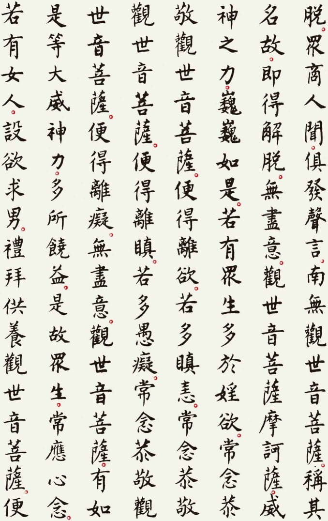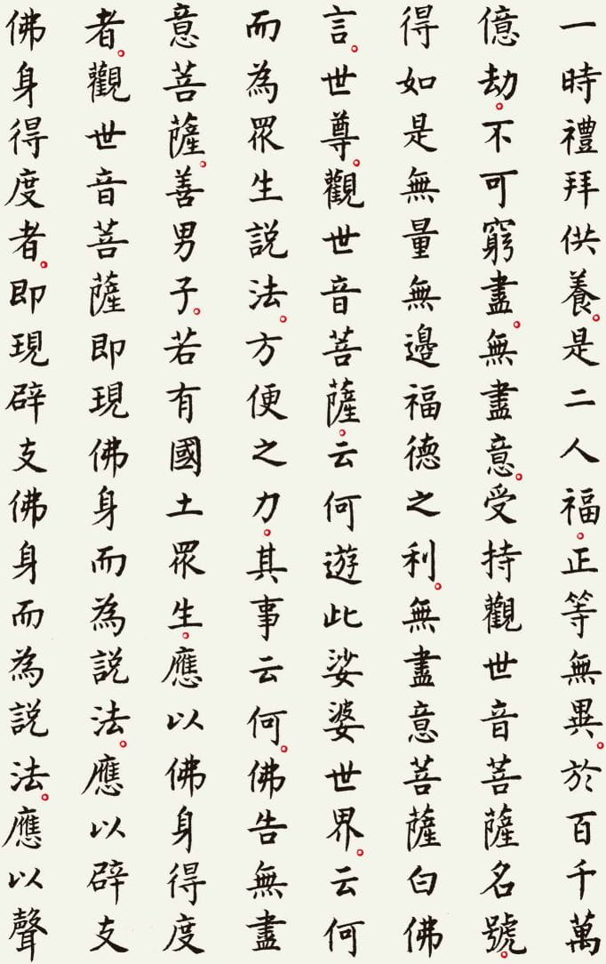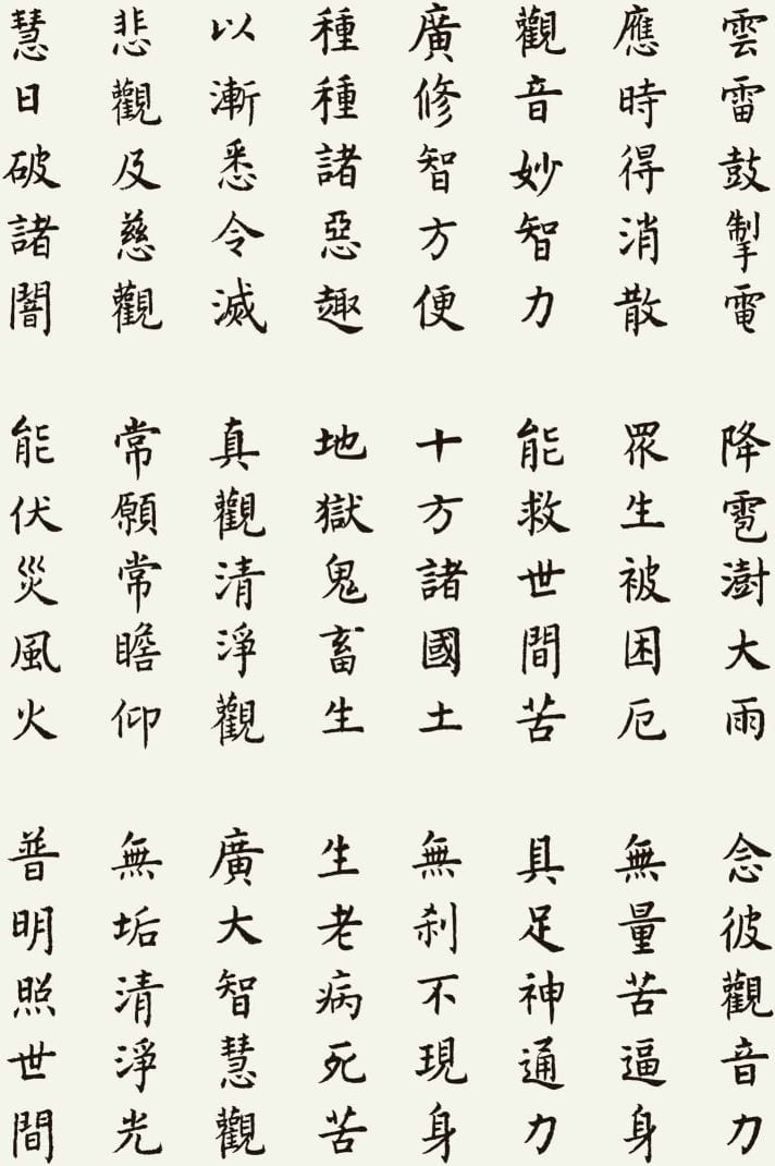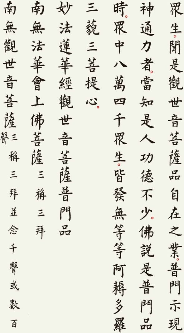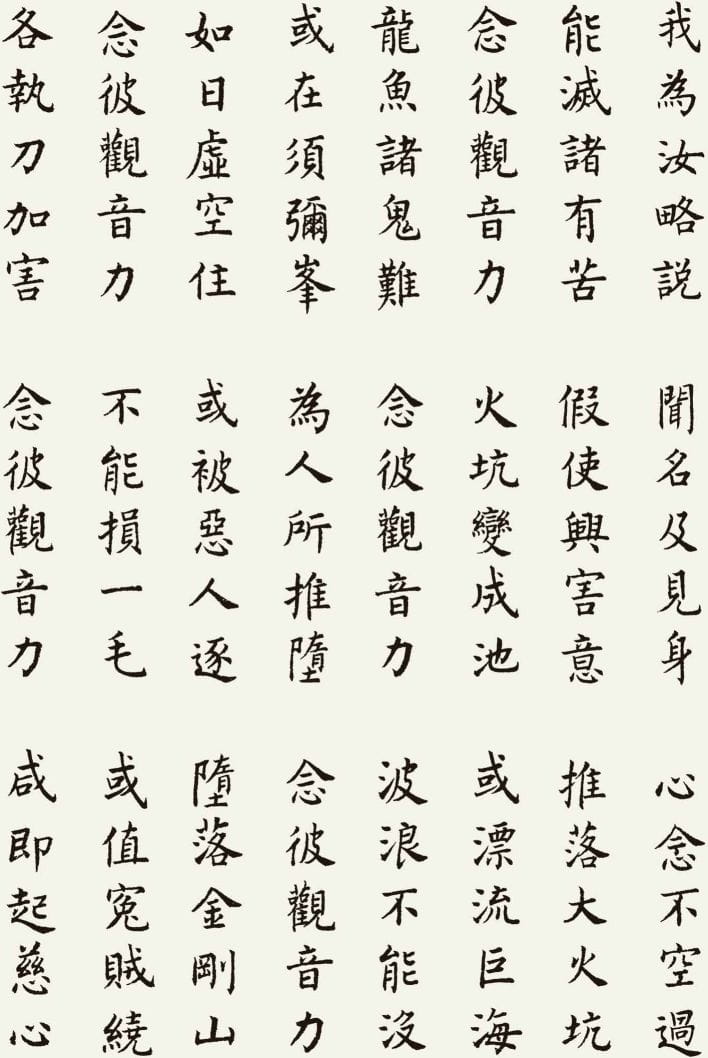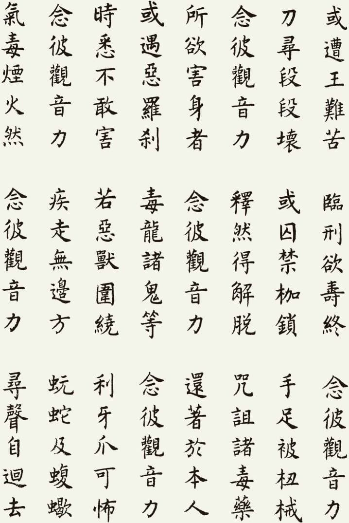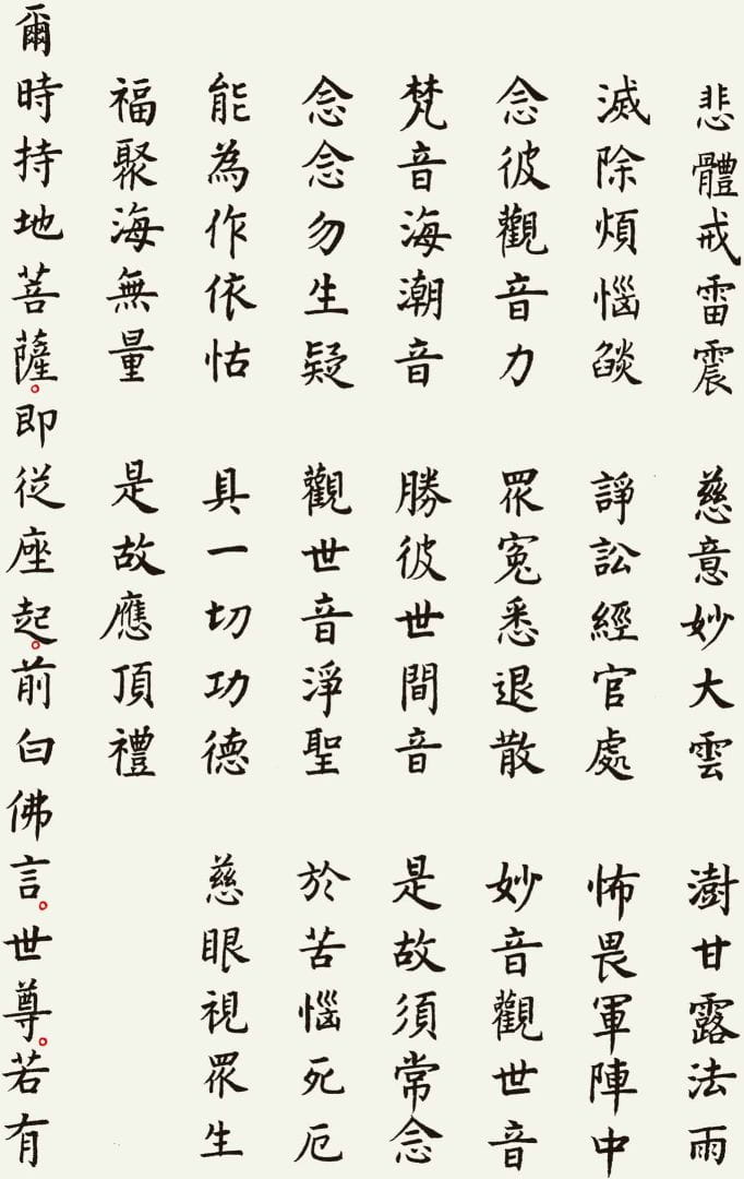本文整理了一件以《观世音菩萨普门品》为内容的书法作品,希望在阅读经文的同时,也能感受书法所呈现的宁静与庄重之美。