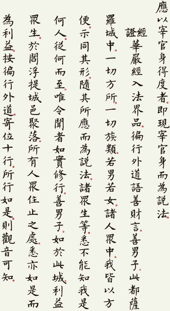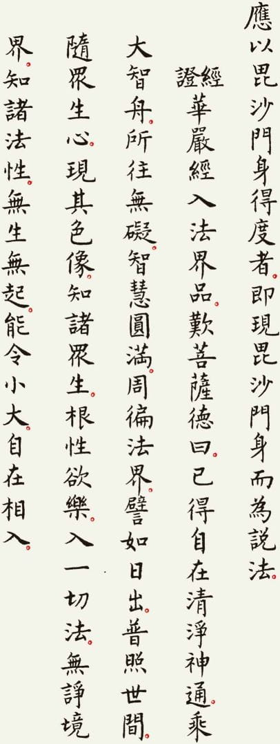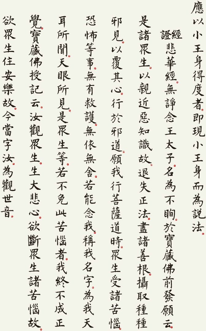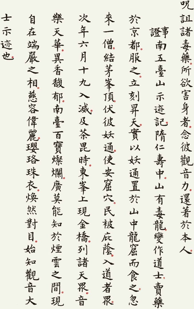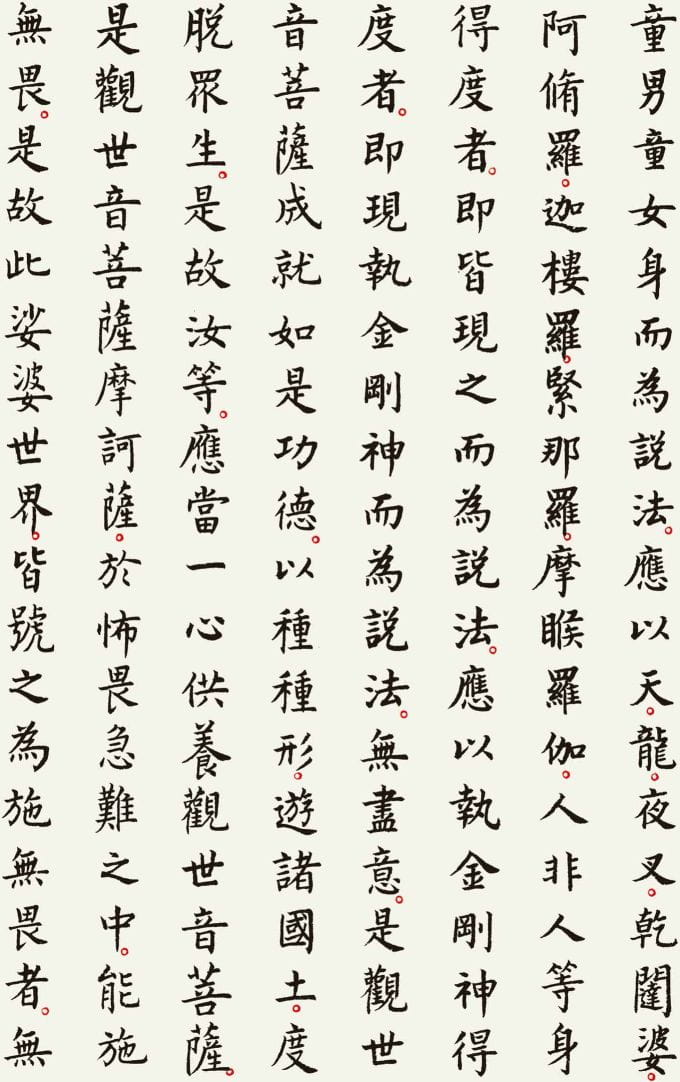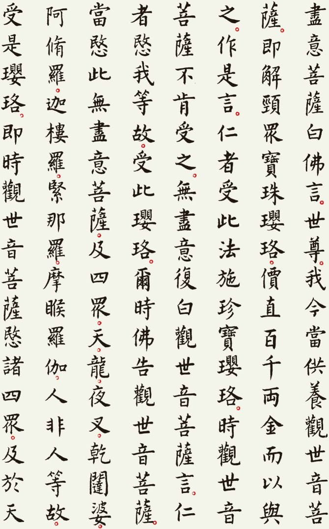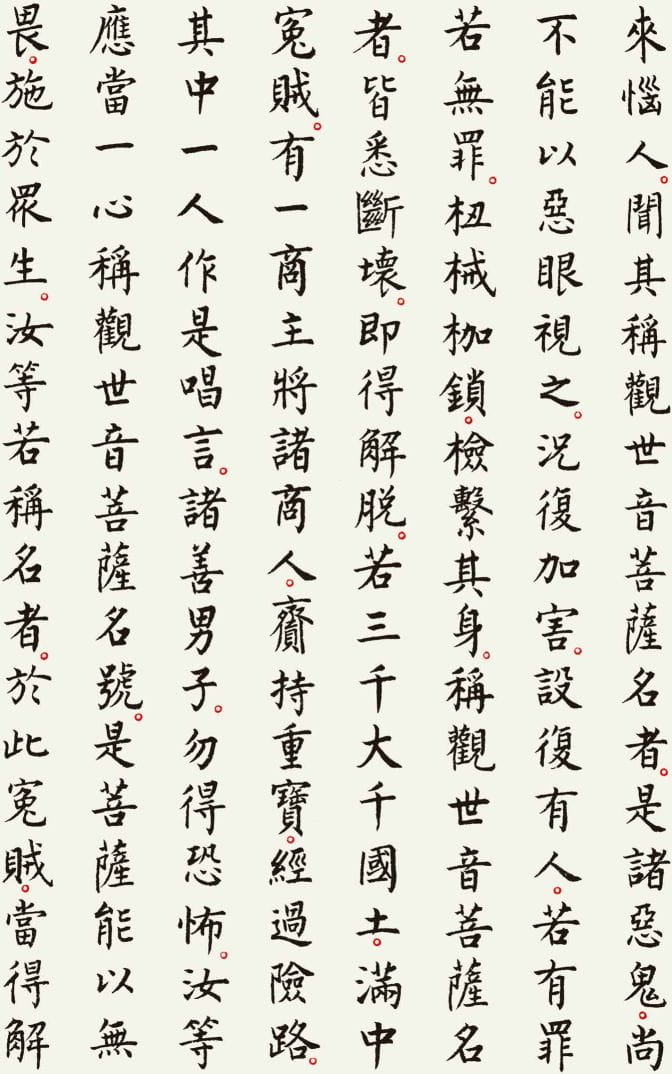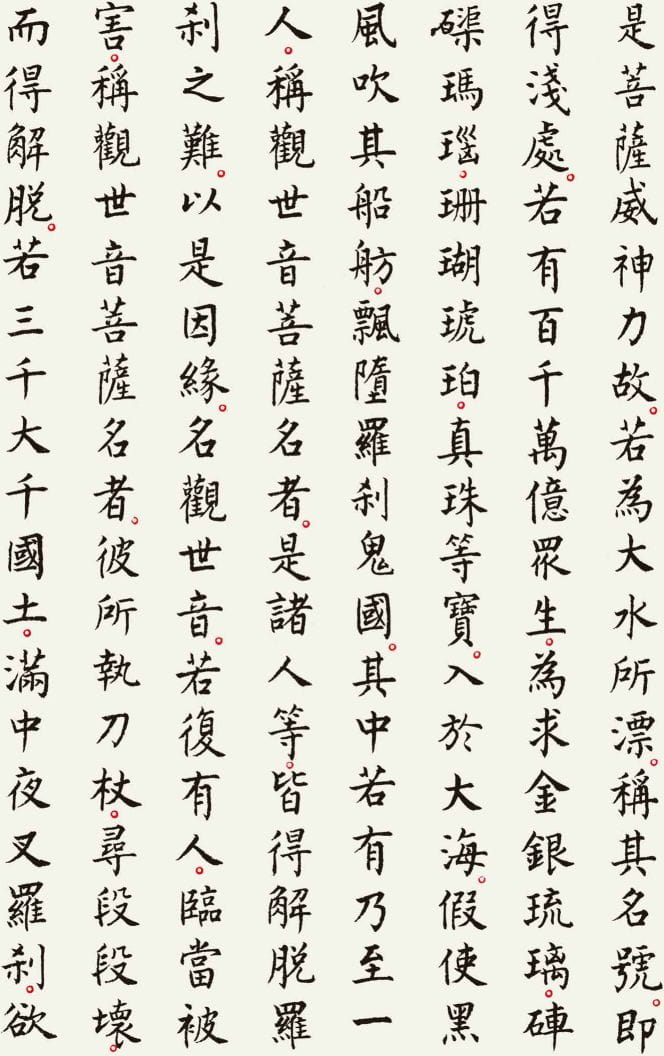 本文整理了一件以《观世音菩萨普门品》为内容的书法作品,希望在阅读经文的同时,也能感受书法所呈现的宁静与庄重之美。