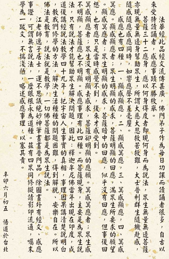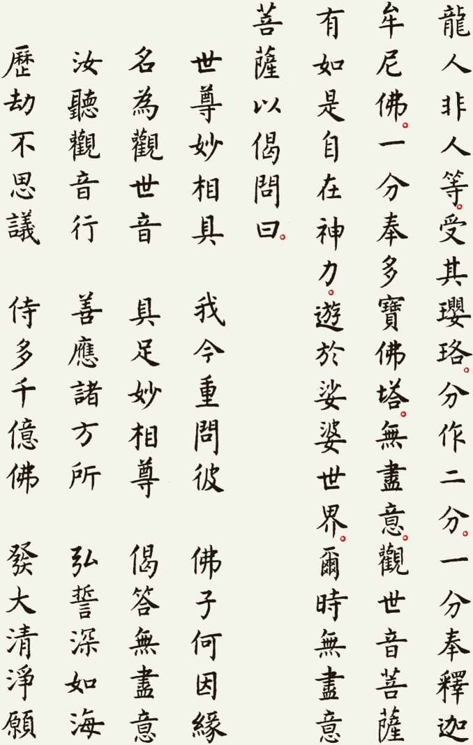 《观世音菩萨普门品》是《妙法莲华经》中的重要一品,广为流传,寄托着人们对慈悲、救苦与安慰的向往。